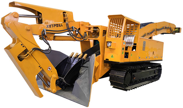 主要动作采用先导阀控制,操作轻松简便,舒适,机动灵活,爬坡能力强,工作平稳无冲击。可以利用工作臂实现掌子面排险,全断面装岩,不留死角,不需人工清理工作面。